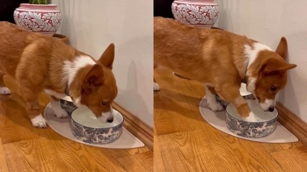 Canines can sometimes surprise their owners with unexpected acts, especially when they are in their training phase. This particular dog video captured an adorable Corgi named Pancake doing something super funny and a little mischievous while drinking water from his bowl.
