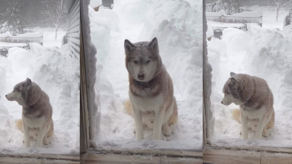 Husky won’t leave the snowy outdoors no matter what