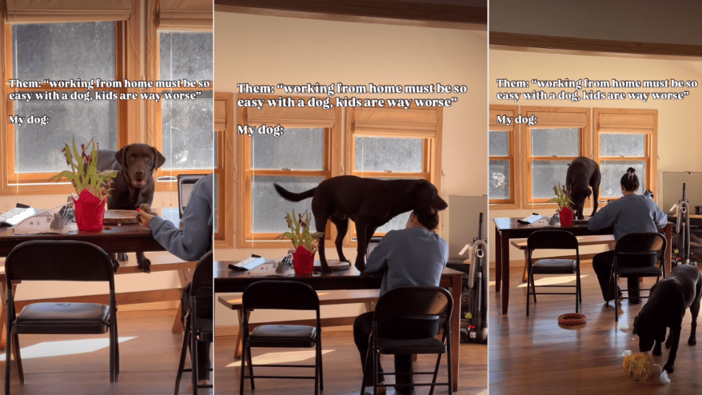 In a funny dog video on Instagram, a Labrador named Pilot plans to steal a woman’s hair clip when she is on a work call. The clip begins with an on-screen text, through which the owner shares what people tell her. It reads, “Working from home must be so easy with a dog; kids are way worse.” Then, the clip shows the reality.