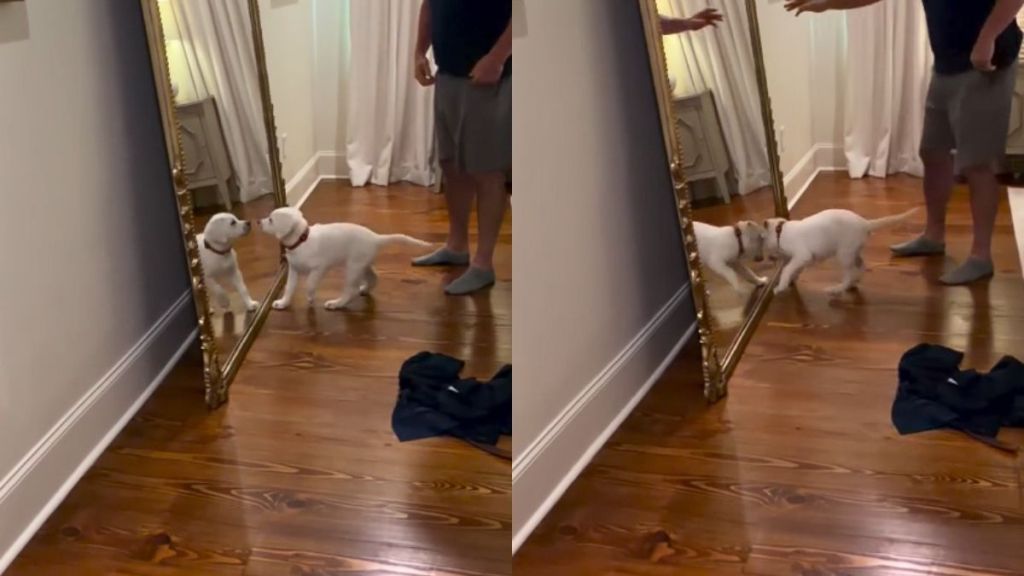 This video of the puppy watching himself in the mirror will leave you laughing as the pooch gets bamboozled after looking at his own reflection in the mirror. His reaction even left his parents as well as the viewers laughing. As a result, the clip is garnering a lot of attention online for the pup’s hilarious response.