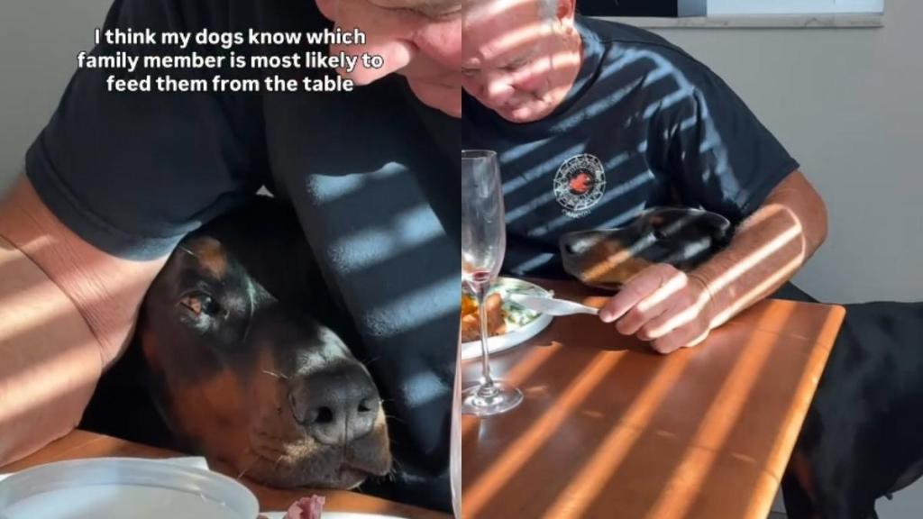 If you ever wondered whether dogs can tell who the “soft touch” is in a family, two Dobermans named Axel and Karma have your answer. An adorable Instagram video from @axel.thedoberman shows the two dogs hovering close to their grandpa as he eats his food, because they know they can easily melt him.